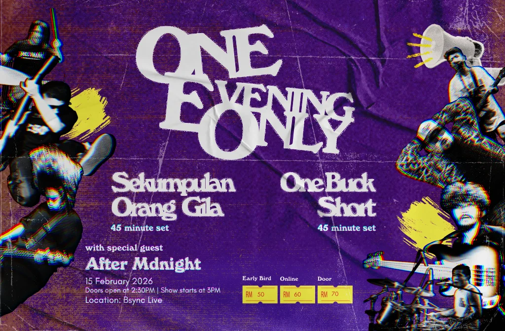 A special showcase by One Buck Short and SOG commemorating their collaboration on One Buck Short’s latest single, “ERAD”. The show brings together two heavyweights and special guests AfterMdnight celebrating the coming together of three generations from the Malaysian scene.