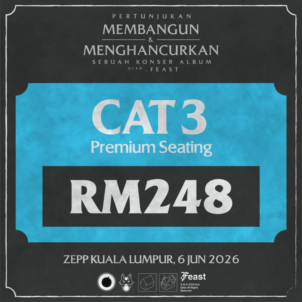 - Atas sebab keselamatan, penonton berusia 7-12 tahun dibenarkan di kawasan Cat 3, Cat 4 dan VIP sahaja.