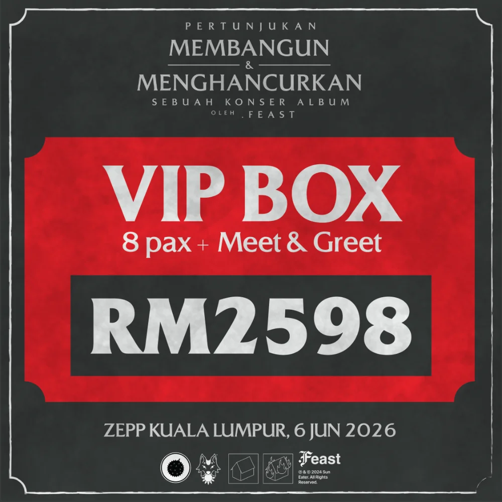 VIP PAX adalah pembelian untuk 1 tempat duduk di kotak VIP manakala VIP BOX adalah pembelian 1 kotak VIP yang boleh memuatkan 8 tempat duduk.